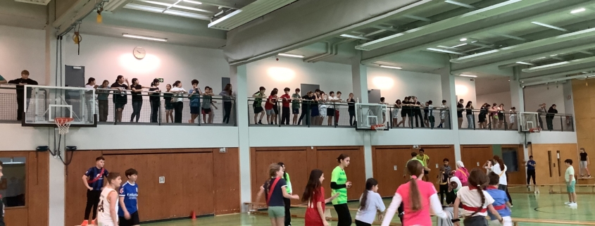 Jede 5. Klasse stellte vier gemischte Teams aus Mädchen und Jungen. Die Kinder zeigten großen Einsatz, spielten engagiert zusammen und beeindruckten durch viele gelungene Aktionen und treffsichere Würfe. Trotz der großen Lautstärke und des lebhaften Trubels in der Halle wurde sehr auf den Fair-Play-Gedanken geachtet: Der Umgang mit Niederlagen und die großen Emotionen mussten ab und an noch gemeinsam mit den Lehrkräften verarbeitet werden, nach jedem Spiel gehörte das obligatorische Abklatschen mit dem gegnerischen Team sowie den Unparteiischen aber selbstverständlich dazu.